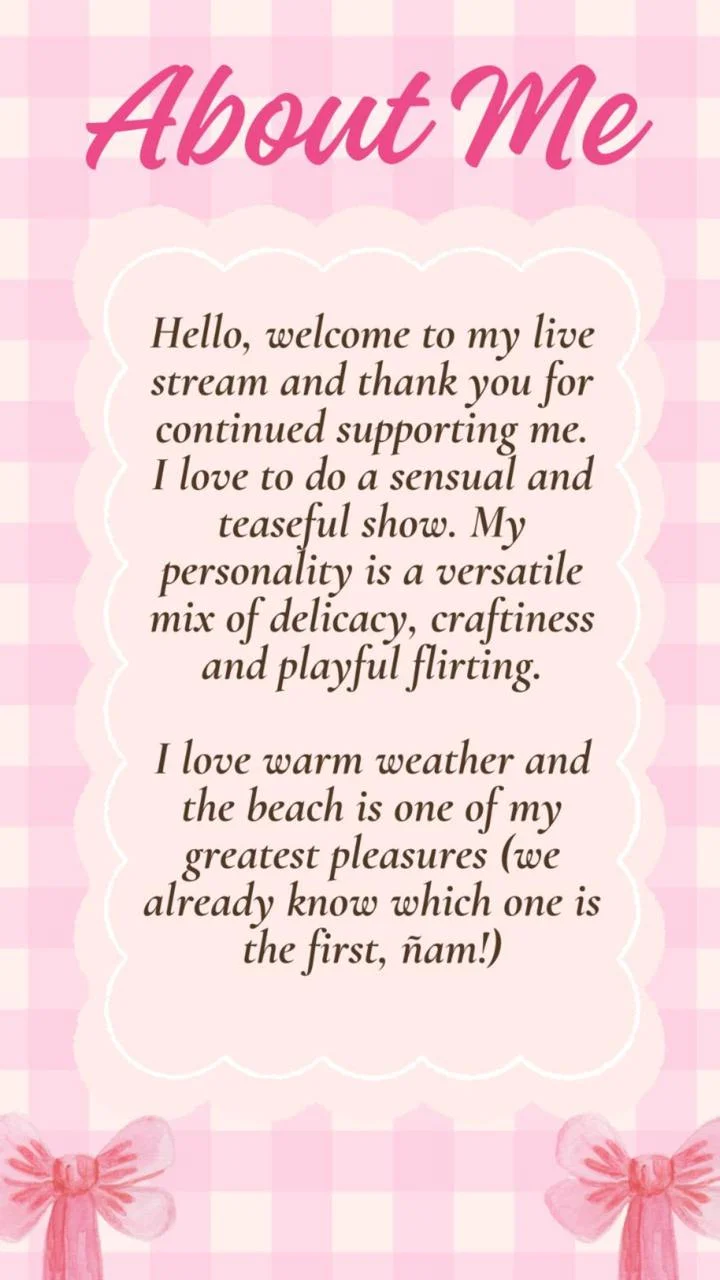 Ahegao, Dirty Talk, Foot Fetish, Spanking, Oil Show, Cock Rating, Doggy Style, Cowgirl, Upskirt, Office, Nylon, Latex, Smoking, Mistress, Double Penetration, Dildo or Vibrator, Handjob, Jerk-off Instruction, Yoga, Heels, Leather, Corset, Cosplay, Cooking, Masturbation, Sex Toys, Erotic Dance, Humiliation, Topless, Striptease, Role Play, Kissing, Tittyfuck, Fingering, Twerk, Squirt, Facesitting, Orgasm, Facial, Gagging